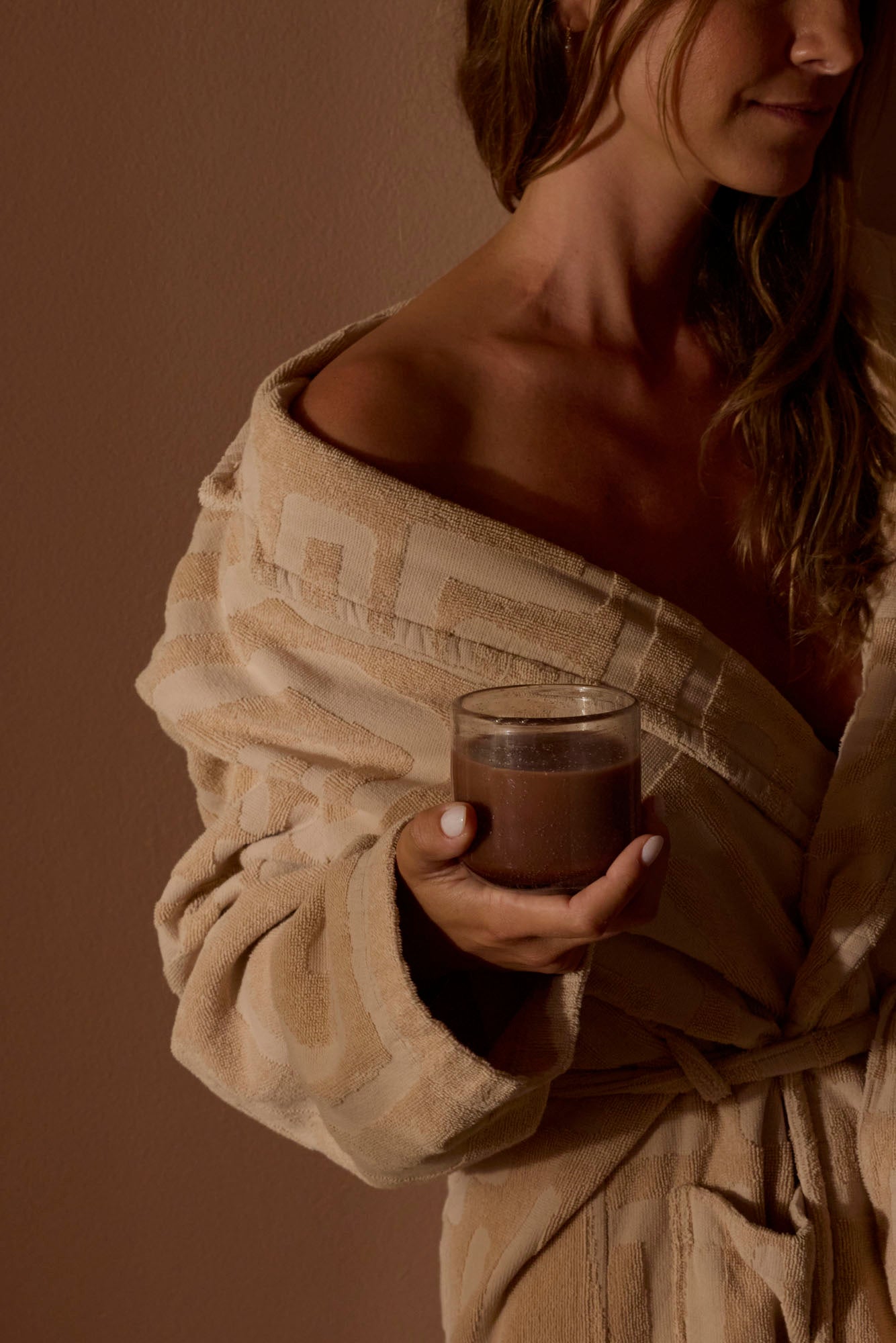 Embrace the calming power of Magnesium, gently complemented by Glycine and Tryptophan, in this comforting blend. Perfect for your evening ritual, this warm, calming drink invites relaxation. Sip slowly, letting the rich cacao and powerful ingredients envelop you in tranquillity as you wind down and prepare for a restful evening